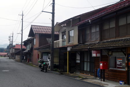 蒜山高原と呼ばれる旭川の上流域に開ける高原盆地、その一角にある中福田・上福田地区は大山往来という街道沿いに立地したところで、宿場としての指定はなかったようだが古くから集落が発達した所のようだ。 中福田地区では集落中央に鎮座する福田神社の姿が印象的だ。その立派な構えは現在の家並とは不釣合いなほどで、多くの文化財も所有している。この地区が通称宮脇と呼ばれているのも福田神社との深いつながりを感じさせる。既に18世紀前半頃には市が開かれたとの記録があり、牛馬をはじめ各種商品が取引されたという。市を要とした街道沿いの商業町として発達を見たのだろう。 集落は神社を中心に東西に街村らしい佇まいを示していた。サッシ戸に変わっているものの、多くは1階が開放的な構造となっていることからかつては商店が連なっていたらしいことがわかる。また、トタン屋根が目立つのは冬の積雪が多いことを物語っているようで、伯耆との峠近くで厳しい環境にある様子がうかがえた。 家並の間には清冽な水の流れがあり、山間集落らしい風情であった。 |