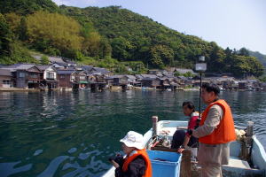 | ■保手濱家住宅(1884頃) 〖登録有形文化財〗 明治前期に建てられ、雑貨屋・駄菓子屋を営んでいた家で、木原家に向う坂道の途中に位置している。外観で特徴なのが軒庇が深いことで、二階部が奥まった位置にある印象を受ける。 玄関の敷石もこだわりが感じられ、そこから一直線に廊下が走り両側に幾つかの部屋が連なるのも特徴で、旅館のような間取りになっている。手前左側の座敷は立派な床の間が見られ、床柱は通りを挟み向かいにあった郵便局が移築する際、前庭にあった棕櫚(シュロ)の木だという。 二階部は物置のような様子で古びた家具などが置かれていたが、とても頑丈な梁組に驚く。それほど大きな構えの御宅ではないが、昔の家は良質な木材をふんだんに用いている例が多い。 |