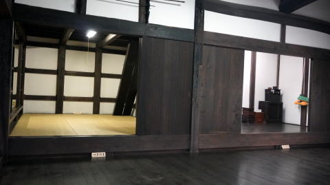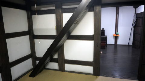 | 奥の座敷には非常時に主人が二階に退避できる梯子(格納式)がある | 二階の隠し部屋 裏の小窓から外に出ることが出来る |