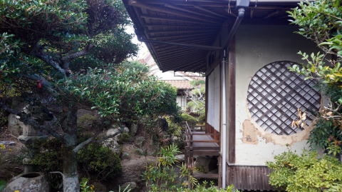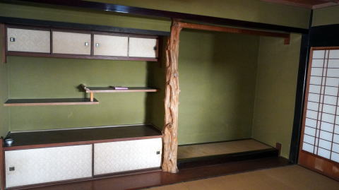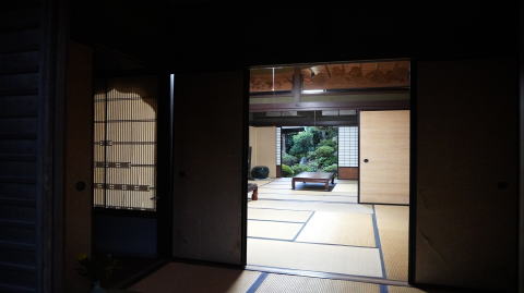 | 中庭側から座敷を見る 床の間の「地袋」は円形に加工され大変手の込んだ造りだ | |