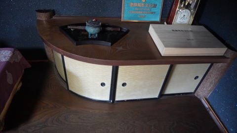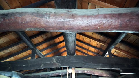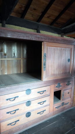 | 二階天井部に見事な梁組が見られる 格式ある家具が保管されていた | |