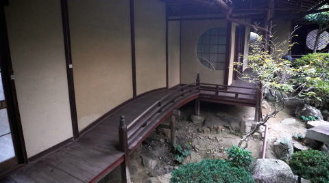 | 中庭を囲う渡り廊下 小さな太鼓橋もある | |
