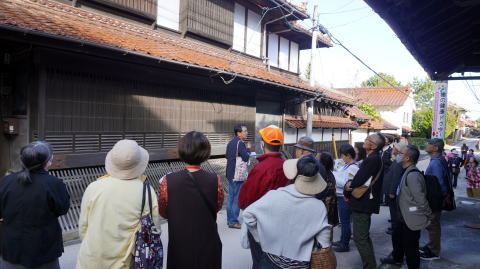 ■探訪の様子 この催しを知ったのは、ローカル番組で偶然予定を知り、ネットで確認し即座に申し込んだもので、定員15名とあり当日はのんびりと町家巡りの雰囲気が想像されたが、会場を訪ねて驚くことに50名近くの参加者があり探訪も二班に分れてとなった。探訪の後には、現地で町家の解説も担当された渡邉氏の講演があり、古い建物の再生に携われている生の声を聞くことができた。その間に頂いた「白市紅茶」は、化学肥料などは使用せず手作業での栽培、製造と大変手間をかけて造られているそうだ。 今回が保存会発足初の催しということだが、今後も旧家・町並の魅力を発信され、活動が町家群の保存活用につながることを願いたい。 |