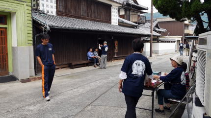 | 瀬戸内海中部に浮ぶ大崎下島。かつて大型船・動力船が発達していない時代は風任せ波任せの航行が主体で、波穏やかな瀬戸内は多くの船舶で賑わい、港も多く発達した。 この御手洗地区は江戸中期以降、北前船(西廻り航路)の寄港地となり、船員の多くの休泊するところとなった。それらを仲立ちとして商取引も多く、また廻船を営む者も増えて、今の島の小さな集落といった雰囲気からは考えられないほど賑わっていた。とりわけ特筆されるのが遊女の存在で、遊興に手を染める余りここに住み着く船乗りもいるほどだったという。 廻船業をはじめとする伝統的な町家、洋館等がまとまって残ることで、国の重要伝統的建造物群保存地区にこの御手洗が選ばれてから今年で20年、地元住民グループによりこのほど記念イベントが開催されると知り訪ねた。 |