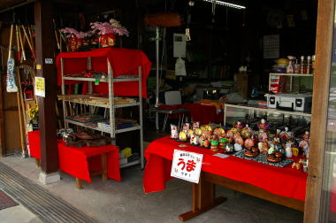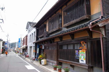 | この東城の中心街は周辺の国道沿いなどに郊外型の店舗も見られるが、今でも比較的現役の店舗が見られ、また一部では手を加えられ装いを新たにした建物も見られる。造り酒屋も2軒現存し、その内一つでは試飲も行われていた。 店の守りをされていた奥様に色々お話を伺った。地方で酒屋を続けることの困難さよりも前向きな言葉が多く、頼もしさを感じた。ちなみにここで酒造に用いられている水は石灰岩質の台地から湧き出た水だそうで、ミネラルを多く含む硬水である。一般に日本酒は軟水で仕込むもので、硬水の酒は珍しい。そこで迷わず一本買って帰ったのだが、あっさりしたなかなかの味わいの良い酒であった。 |