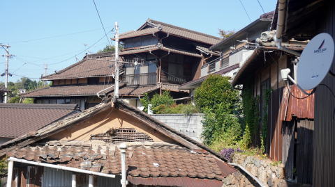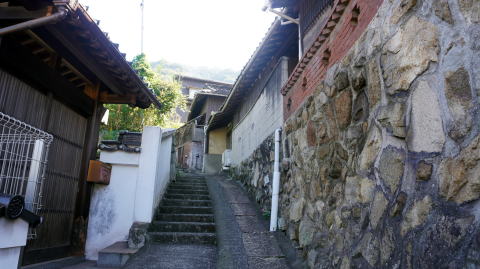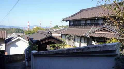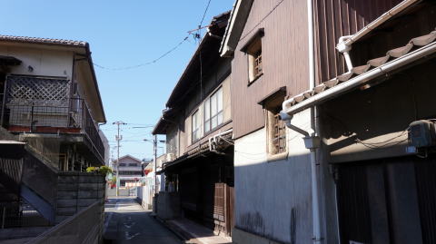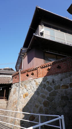 呉市街地から音戸方面に向けて海岸一帯には大規模な工業地帯が展開しており、それが途切れる辺りから音戸瀬戸を望む付近にかけては警固屋地区と呼ばれている。 室町期から見える地名で、もともとは警固屋氏という海賊衆の一つでもあった。江戸期以降は半農半漁の村として醸造業などの産業も発達したところである。 江戸期から明治中期にかけては警固屋村という独立した自治体で、その後昭和に入って山手に位置する的場町が分立した。的場町は呉海軍工廠に近いことから後発的に住宅地となった地区で、斜面上に路地が交錯している。軍都としての人口急増期、住宅需要に対して宅地に適した平地が圧倒的に少なく、市街地の辺縁部には随所に急峻な土地を宅地利用している風景が目立つ。 警固屋地区はバスの通るメインの通りの両側に商店が並び、小さいながら中心市街地を形成している。海側の一角にはやや大柄の商家風の建物も見られ、営業は止められているようだが造り酒屋や醤油醸造家の姿もあった。 一方山手に足を向けると斜面に家並が駆け上がるように展開している姿が見え、次第に細い路地も目立ってくる。それらに沿っては石垣、石積など斜面を克服するための努力の跡が見られ、集落景観としても特徴を感じる。多くは軍需による人口増加を受けて大体同じ時期に建てられたらしく、似通った構造の家屋が目立つようが、そんな中でも間口の広い立派な二階屋や土蔵を従えた御宅などもあった。路地を巡っていると、不意に煉瓦塀が現れたり、建物の個性的な意匠が眼に付いたりと探訪的にも興味深いものがある。 ところで、以前から疑問に思っていたのはこの地区の屋根の色である。ほぼ茶褐色に統一されており、特に少し離れた所から見ると異様な感じも抱く。古い建物だけではなく、比較的最近に建てられたと思われる家々も同様だ。地区の統一事項で景観配慮なのかとも思っていたが、聞くところによると近くにある製鋼所からの鉄粉の影響なのだという。ある意味公害ともいえるが、現在は廃炉となっており、今後景観に変化が出て来るのか、注目しておきたいものである。 |