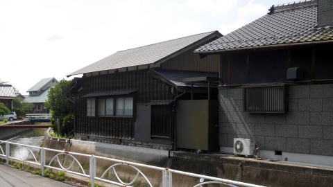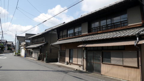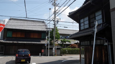 | 木曽川町黒田は木曽川の左岸、対岸は岐阜県という場所に立地する。東海道本線と名古屋鉄道本線が地区の中央を縦断し、高速道も通過するなど幹線交通に沿っているが、旧市街地は細い道路が交錯した個所が多く、余所者にはなかなか訪ねにくい地区でもある。 中世には黒田城が存在した。現在は取り壊されているが黒田小学校の辺りにあったとされ、城西などの地名が残る。天正12年の小牧・長久手の役で織田・徳川連合軍の拠点となり、両軍の兵が駐留することとなった。関ヶ原合戦時は秀吉の部将一柳直盛が城主となっていたが、これを機に伊勢神戸城に移封され、黒田城は廃城となる。同時に黒田藩も廃され尾張藩に組込まれた。 黒田にはまた交通の要衝という側面もあった。中世には美濃墨俣から下津(現稲沢市)とを結ぶ鎌倉街道と呼ばれる道筋にあり、また東山道との分かれ道にもあたっていた。黒田城なき後は町はさびれたが、それでも旧鎌倉街道沿いでは市が立つなど賑わいを見せた。美濃路・起宿の助郷村でもあった。しかし、一宮村に三八市という市が開かれてからは急速に衰えたという。 この付近の地図を見て、まず城下町時代そのままと思われる地名・字名が多く残っているのに驚く。それらが複雑な町割を示す一方、往還西など街道沿いを示すものもあり、城下町・街道町として発達した町の歴史を見るようである。しかし、古い町並としては東海道本線木曽川駅東側の南北の街路筋にわずかに残っているのみで、家並から歴史を感じることは難しくなっているのが現状である。 そんな中で、街道筋と県道が交わる辺りには「硝子店」の文字が読み取れる古びた看板を掲げる商店建築を筆頭に、幾つかの古い家屋の並びがあった。この界隈には辛うじて往時の面影が感じられた。この少し北側を東西に流れる水路沿いにも倉庫や土蔵などが見え、裕福な商家の存在を感じさせるものがあった。 |