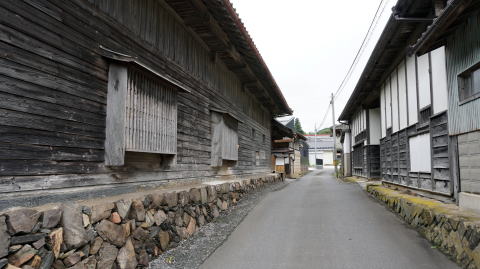 | 集落入口付近には長屋門が向き合った風景や厳かな門構えのある風景が残っていた | |