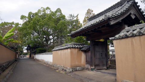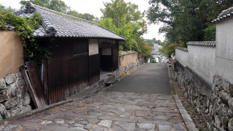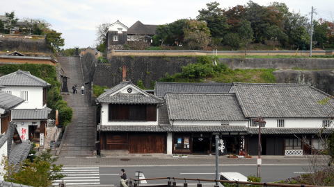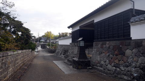旧市街は東端の小高い丘の上に杵築城跡、その西側に低平な地が僅かに開けるが、すぐに丘陵が舌状に張出してくる。この台地の上に武家屋敷を配置していた。中間に谷間を挟んで北台・南台と呼ばれ、北台には上級武士を、南台には中級武士の居住地であった。一方台地を切り裂くように東西に伸びる細長い谷間の地区は町人町として商家が発達していた。遠方の見通しの利く高い土地に武家を配置することは、防衛上も有利であっただろう。南には八坂川を控えており、要害の地を設けるのに絶好の地形をしていることがわかる。 武家街と町人町を結ぶ坂道もまた、この町並を特徴付けるものとなっている。勘定場の坂、酢屋の坂、飴屋の坂など当時からの呼び名が生きている。特に南台の志保屋の坂から酢屋の坂を望む風景は素晴しく、高い石垣の上に茅葺の母屋を持つ大原邸にかけての眺めは杵築を代表する風景としてよく紹介される。この大原邸は、京都の職人による池を配した回遊式庭園があり、かつて森を拓いた土地であることを伝えるように巨樹が残されている。屋敷は代々御用屋敷として名士の所有するところとなり、最後に大原氏の邸宅となって役目を終えた。ここでは抹茶を飲みながら縁側にしばらく腰を下ろしてみるのがよい。南台武家屋敷街では中級武家街ということもあって、残っている長屋門などもやや小さくなるが、練り塀の続く通りもあり、街路幅も広いため開放的な明るい雰囲気の町並であった。 酢屋の坂を下ったところに伝統的な町家建築があり、味噌を商われている。この綾部味噌は創立当初酢商であったそうで、坂の名前の由来である。 |
