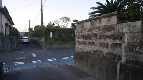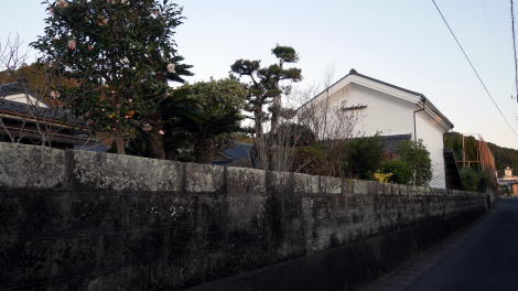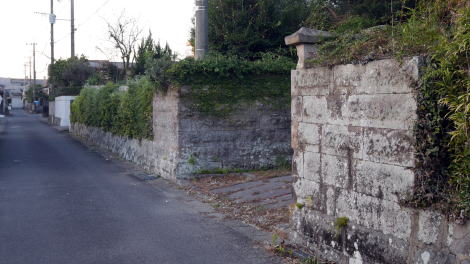 国分の町を象徴する風景は国分小学校の敷地に残る朱門であろう。国分城(舞鶴城)の跡地で、この門はかつての南門であった。石垣と堀が現在も明確に残っており、歴史を伝えている。 舞鶴城は関ヶ原の合戦の翌年、島津義久によって築かれたものである。諸国の脅威に対抗するため隼人の富隈城からここに移り、城の南側には城下町を建設し本格的な町造りも行った。鹿児島の鶴丸城完成までは島津氏の本城的な役割を果たしたともされており、以後も鹿児島藩の外城の中でも筆頭格の位置にあったものと考えられる。 国分は鹿児島藩にとって産業上重要なところとして、海岸部には大規模な塩田が造成され、またタバコ栽培も督励された。特に後者は国分煙草として藩内のみならず全国にも有名なものとなった。 門と石垣に厳かさを感じる小学校の東側には高等学校も隣接し、文教の一角となっている。かつて城下地であったというその南側は、幾分か麓集落らしい佇まいが感じられた。家々を囲う石積にはツル性植物などが絡み、ブロック塀であっても苔が付着したりして不思議な風合いが感じられるのが面白い。瓦を載せた門、また一部では石柱門も見られた。 古い町並というより城下町・外城集落の遺構といった印象であるが、町歩きには適した一角である。 |