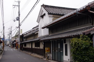 | 郡山の歴史は古く、平城京の南に連なる町として位置づけられ、市域北部には西奈良口町・東奈良口町という町名が残り、その辺りが平城京の一坊大路に当っていたという。東大寺の荘園ものこの付近に設けられていたといわれる。 中世に入ると地侍であった筒井氏が台頭し郡山城を築城、以後城主はさまざまな変遷を経たが、現在の城下町の基礎は天正13(1585)年に豊臣秀吉の弟であった秀長が入城した時までにに遡る。 大和では城下町として本格的に町割等が残っている町が少なく、古い町並がよく残っていても多くが商業町なのであるが、この郡山は生粋の城下町であり、地図を見てもそのことがよくわかる。市街地には城跡が濠とともに残り、その東側には城下町特有の細かい町割が今でも残っている。ほとんど小路ごとに区分されていて、豆腐町・紺屋町・塩町・魚町・雑穀町・鍛冶町・大工町...。それらの味わいある町名が今でもそのまま受継がれているのが嬉しい。 この町で古い町並を訪ねたいなら、ひたすらこの旧町名の入混じった一帯を歩くとよい。路地も狭く複雑に入組み、近代的な都市になるのを頑なに拒んでいるような雰囲気がある。さすがに過半数では現代風の家屋に建て変わっているものの、平入りで袖壁を備え付けた伝統的な町家が多く残っている。1階部分も改修されず美しい格子を残す旧家もある。古くから過密都市だったのだろう、家々の間口が狭くまさに軒を接した佇まいだ。 紺屋町付近は例外で、街路が広くしかも中央に細い流れがある。これは城の濠水から引いているということで、かつてはこれを利用して紺屋が藍染めの布を晒していたといわれる。このような遺構を潰さず残している姿に、この町の古いものに対する愛着と思い入れを感じる。 古い町並としてはそれほど連続性は高くないが、市街地が広いため町家の軒数は多く、小路の角を曲ればまた別の家並・旧家と、路地歩きの楽しさがある。ここでは町名の書かれた町の地図を片手に歩かれることをお勧めしたい。 |