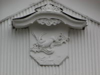 | 土蔵妻部の梁隠しに幾つか鏝絵が残っていた。いずれも張り出した小屋根に守られるように描かれている。左は波に乗る兎、中央は龍、右は獅子がイメージされ、悪魔払い、火除けなどの意味をこめた象徴として描かれたようです。 | ||