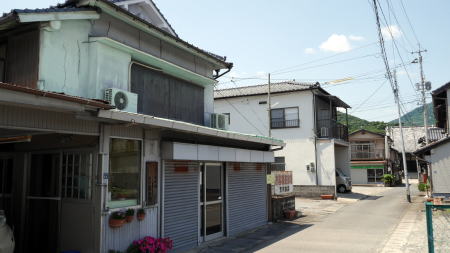 熊本市小島地区は熊本市街の西に聳える金峰山の南麓、また市街地を流れ下る白川の河口部にも位置し、西は有明海に面する。 17世紀後半の寛文期に記された『肥後国誌』では「小島町ト云フ小市アリ」と記述されているが、以後は次第に熊本城への物資輸送の要港として物資の結節点となり、城下からの船はここで大型の船に積替えられ有明海に出て行った。鉄砲2・一両筒1・鑓2が配備され軍事的にも重要な港として位置づけられた。 明治5年には天皇の西国巡幸の際宿泊地となり、その建物(角屋屋敷)も残っている。明治初期の記録では酒造家1・醤油職1・味噌職1・呉服屋2・旅籠屋2・質屋6などとある。 かつての町並は白川とその北を流れる坪井川に挟まれた低平なところに展開している。付近は小高い土地が細長く続いており、かつての堤防上だったと思われる。妻入り平入り混在ながらかつての商家を思わせる佇まいが見られ、少し前まで店舗として現役だったのか看板の残る建物もあった。建物の連続性は今ひとつといったところだが、一角には船着場跡なども見られ、河口港であった昔を偲ばせる。 堤防下にあたる箇所には1818年創業の浜田醤油が現役で、白壁の醤油蔵が威容を誇る。付近には建物などの案内板も見られ、訪ねる者を意識しているのが伺えた。 |