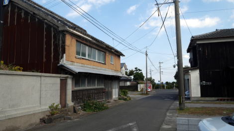 | 国東町鶴川は半島が最も東部にせり出した辺りに町が展開している。 伊予灘・周防灘から瀬戸内一帯へと向いた地形から、古代より海運が盛んに行われていた。平安期には国埼津とよばれ早くも港が発達していた。当時、公的には大宰府から許可証を得て関門の関を通過しないといけなかったが、許可を得ず自由に交易を行う者も多かったという。 江戸時代は初期に小笠原氏の支配を経て前半は杵築藩松平氏領で、元文2(1737)年からは幕府領となった。杵築藩の時代に藺(い草)の栽培が奨励され、その積出のため港が整備された。特に田深川河口付近にあった港は荷の往来が多く、田深と河口右岸の鶴川は在町として発達した。 明治には東国東郡の役所が鶴川に置かれ、常に半島の中心的地位を占める村であった。 鶴川の町並は、海岸部だが少し小高い台地上の一帯に街村的に連なっている。かつての中心街は現代の商店街となっており、伝統的な建物が多く見られるという状態ではないが、家並の連続性が高く見応えを感じる。所々に重厚な瓦屋根を持つ老舗の姿、さらに旅館の看板を掲げた建物も少なからず見られ、港を中心とした賑わいの町らしい佇まいであった。現代的な面立ちの建物も、昭和の雰囲気を濃厚に感じさせる店舗の姿だった。 大正11年に国鉄杵築駅と杵築の中心街を結んでスタートした国東鉄道は、少しずつ路線を延長し昭和10年ここまで達し、鉄道ターミナル駅として各方面へのバス路線が発達した。この頃が、町の隆盛期だったのだろう。同鉄道は昭和36年の豪雨災害により折からの自動車の普及も相まって廃線となった。 |