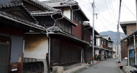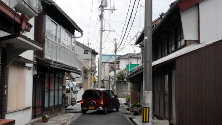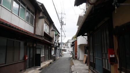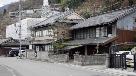 現在の呉市中心より東側に山を一つ隔てた阿賀地区は、川を挟んだ東側の広地区がに挟まれてやや地味な印象である。最近になって市街地へ抜けるトンネルが整備され、国道は交通量が非常に多い。 平地に乏しく、北側は斜面をかけ上げるように宅地が造成され、南側はかつての海岸線に沿って細長く集落が展開する。現在安芸阿賀駅のあるあたりから南側は埋立てによって造成された土地である。 その中で南側の町の風景を取り上げるが、バスなども通る二車線道路の西側にかつてのメイン道路、現在の生活道路が南北に伸びる。その両側には一部袖壁や虫籠窓を残す町家風建築が所々に残り、銭湯などの生活色溢れる風景も見られる。特に南側の一角、メイン道路に合流する地点付近では部分的ながら連続性のある古い町並の風景があった。 江戸期には賀茂郡に属し、半農半漁の村であった。特産品に紙の原料である楮、綿、蝋燭の原料である櫨、煙草などがあり、また漁師は近海漁中心であったが、魚問屋を営み他所に売りさばく者や、廻船業を営むものなども現れ単純な漁村から多少の発展をみた。 今残る古い街の姿は、おそらく漁村というよりは各種産業、商業が栄えての名残なのだろう。但し狭い路地が交錯するのは漁師町らしく、町割りは漁村のそれらしい。車道からはこの町並の存在は隠れてわからないため、なかなか知られることも少ない町並である。 最近になって、呉高専の准教授や生徒などの手により、町家などの調査が行われているようだ。 |