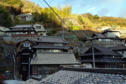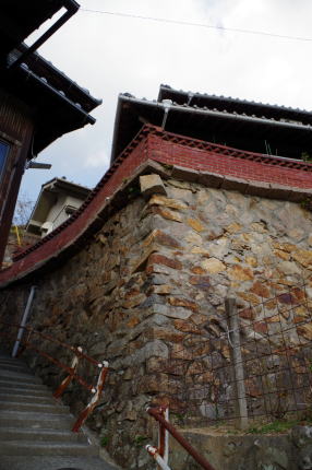 | 斜面にかけても石垣が築かれ家々が連なっている | |