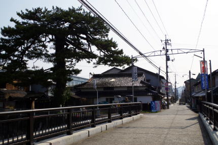 | 国道より南側の町並 川沿いに立派な老松が残る | |