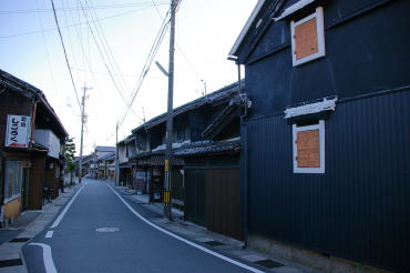 | 旧和歌山街道沿いに展開する街村が立地の由来であり、今残る町並としての歴史的姿は街道上の小さな在郷町といった風情である。しかし家々の佇まいはなかなかどうして見応えのする町家が連なり、典型的な古い町並の風景が残されていた。江戸末期に建築されたと思われるものもあり、つし2階部分には虫籠窓が穿たれ、両妻部には袖壁が張り出している。1階部分には出格子が端正に保たれている旧家もあって、電柱が無ければ往時の姿そのままともいえる町並が残されている。 大黒田村は松坂城下の外縁部に位置していたことから、松坂に通う要人や旅人、さらには伊勢宮へ参る人々なども頻繁に通り、また周囲に肥沃な農村地帯を抱え、穀物をはじめ木綿や煙草が栽培されていた。そのようなことからも商人が数多く集結したのだろう。黒田町などを枝郷に従え、随分賑やかな町であっただろうことは町を歩くと容易に想像が付く。 家並が立て込んでいることにより、旧街道が温存されたままバイパスが建設されたであろうことが地図を見ると推測される。市街地で古い町並がまとまって残っているのは松坂城址近くのごく一部に限られているにもかかわらず、郊外に位置するこの大黒田町に連続性の高い古い町並が残っていることは意外性に満ちており、また貴重なものである。保存を行うに十分価値のある町並だと思う。 |