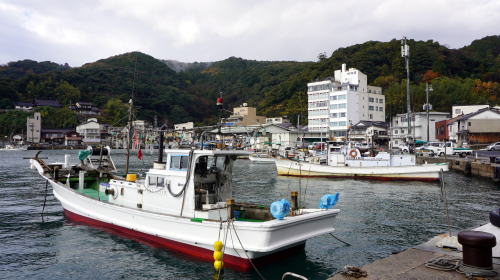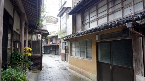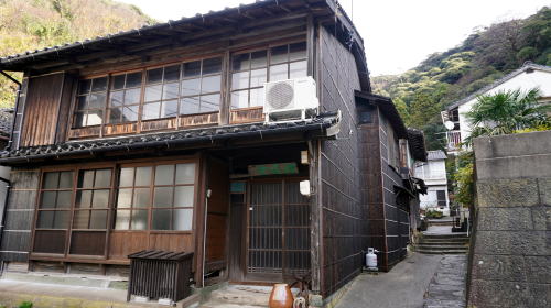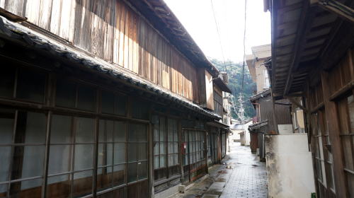 | 漁港沿いから一本山手がかつての中心街 密集して家並が連なっている | |