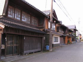 | 三国町は福井県西北部の日本海岸の町で、東尋坊を町域に含み東に芦原温泉を控え観光資源に満ちた町である。 しかし町の中心部は全く観光地の雰囲気とは無縁で、古い町並が広域に渡って連なっている。それらは2階部を袖壁と屋根の3辺に囲われたような特色ある外観を持ち、かぐら建てという独特な建て方の家も散見される。これは妻入りの家屋の正面に平入りの軒を組合わせたような構造をしており、斜め前から見ると滑稽ですらある。家々は保存度が良いものは1・2階とも全面格子窓で、漆喰で塗りこめられた塗屋造りはほとんど見られず側面は板葺きの壁となっており、くすんだ木の色の目立つ町並であった。 この町が古い姿を残しているのは古くから港として長らく栄えたからである。特に江戸期に入ってからは西廻航路が流通の中心として整備され、近在の浦々の中でも特に廻船業が卓越し栄華を極めた。九頭竜川の河口に位置していることから越前全域の米が集積され大阪へと出荷されたという地理的な条件のほか、漆器や紙、絹織物などの産地を控え、それらが全国の消費地に流通するだけの質を持っていたからでもある。また山陰の砂鉄はここで陸揚げされ川を遡り、中流域の鯖江・武生という刃物の町をを生んだ。 藩は港町を保護する政策を打出し、享保13(1728)年には三国と河野以外の貨物の出入りを禁止した。河口港ということで、常に土砂の堆積があり、千石船といわれた大型商船は沖懸りし、小型船で物資を往復させることを余儀なくされた。それでもこの町が越前随一の発展を見たのは独占的商取引を許容したことが大きく影響したのだろう。往時の絵地図を見ると船持をはじめ様々な商業が立地した一つの都市であったことがわかり、今でも町を歩くと古い看板を掲げた商家を見ることが出来る。 町は上流側から河口に向け山王、南本町・北本町、神明、滝谷、宿と2km余りに渡り続いている。江戸期には、行政上福井藩領の三国湊と、丸岡藩領の滝谷が対峙しており、利害の衝突もあったといわれる。寛永12(1643)年には福井藩が九頭竜川に入ってくる船を三国港で全て改めを行ったため、滝谷は遊郭だけが繁栄する町となり港は寂れてしまった。今、思案橋という石橋が残っている辺りが境界であった。 明治後半になり鉄道が開通すると物資輸送は陸路に転換され、港町としての三国は急速にさびれその後漁港として存続した。現在の町を歩いても、賑わいという印象からは遠く、多くでは静けさが支配している。古い家々はそれほど連続して残ってはいないが、それらは規模が大きく質感が感じられ、しかも今でも居住されているものがほとんどであり、没落した旧家のような印象ではない。 町の背面の小高い丘にはオランダ人技師のデザインによる龍翔小学校の外観を復元した「龍翔館」があり、商船の五分の一の模型や、船箪笥など貴重な遺産が多く展示され、西回り航路、北前船のことが全て学べる施設となっている。その他、三国を代表する廻船業者森田家が創業した「森田銀行」の洋風建築などポイントとなる施設を巡り、可能ならば半日程度かけてじっくりと歩きたいものである。 |