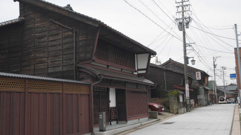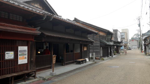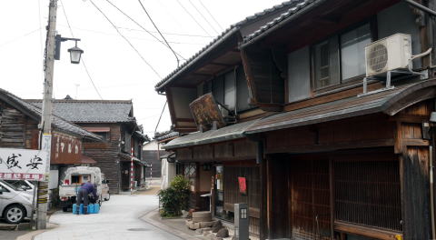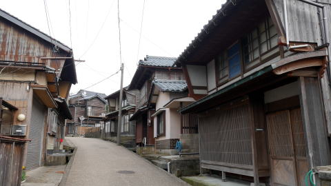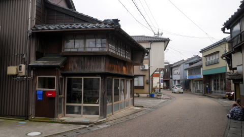 藩は港町を保護する政策を打出し、享保13(1728)年には三国と河野以外の貨物の出入りを禁止した。河口港ということで、常に土砂の堆積があり、千石船といわれた大型商船は沖懸りし、小型船で物資を往復させることを余儀なくされた。それでもこの町が越前随一の発展を見たのは独占的商取引を許容したことが大きく影響したのだろう。往時の絵地図を見ると船持をはじめ様々な商業が立地した一つの都市であったことがわかり、今でも町を歩くと古い看板を掲げた商家を見ることが出来る。 町は上流側から河口に向け山王、南本町・北本町、神明、滝谷、宿と2km余りに渡り続いている。江戸期には、行政上福井藩領の三国湊と、丸岡藩領の滝谷が対峙しており、利害の衝突もあったといわれる。寛永12(1643)年には福井藩が九頭竜川に入ってくる船を三国港で全て改めを行ったため、滝谷は遊郭だけが繁栄する町となり港は寂れてしまった。今、思案橋という石橋が残っている辺りが境界であった。 明治後半になり鉄道が開通すると物資輸送は陸路に転換され、港町としての三国は急速にさびれその後漁港として存続した。現在の町を歩いても、賑わいという印象からは遠く、多くでは静けさが支配している。切妻平入で二階部は袖壁で仕切られ、やや軒がせり出したような外観の家々は北陸地方の多くに共通する佇まいだが、その中でかぐら建てと呼ばれる独特な建て方の家も散見される。これは妻入りの家屋の正面に平入りの軒をぶつけたような構造をしており、斜め前から見ると滑稽ですらある。家々は保存度が良いものは1・2階とも全面格子窓で、漆喰で塗りこめられた塗屋造りはほとんど見られず側面は板壁となっており、くすんだ木質感の高い家並であった。 今回は15年以上隔てての再訪で、町並の中心付近の廻船業者森田家が創業した「森田銀行」の付近の様相に変化が見られた。材木商を営んだといわれる岸名家が公開され、ボランティアガイドが駐在するなど訪問拠点となっていた。表にはかつて存在した芝居小屋「三国湊座」の大看板が復元されている。しかし他を含め訪問者におもねるような店舗や施設はなく、この町の歴史に触れることのできるものとして大切に続けてほしいものだ。 神明地区など他の地区ではほぼ前回通りの印象であった。重伝建保存地区ではないのにここまで変化が少なく良い状態の町並が保たれているのは、地元の方が強くその価値を認識されているからに他ならないだろう。 |