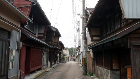 三国町は県西北部、九頭竜川河口付近右岸に古くからの市街地が展開している。東尋坊を町域に含み東に芦原温泉を控え観光資源に満ちた町である。 しかし町の中心部は全く観光地の雰囲気とは無縁で、古い町並が広域に渡って連なっている。それは古くから港として長らく栄えたからで、特に江戸期に入ってからは西廻航路が流通の中心として整備され、近在の浦々の中でも特に廻船業が卓越し栄華を極めた。九頭竜川を介して越前全域の米が集積され大阪へと出荷されたという地理的な条件のほか、漆器や紙、絹織物などの産地を控え、それらが全国の消費地に流通するだけの質を持っていたからでもある。また山陰の砂鉄はここで陸揚げされ川を遡り、中流域の鯖江・武生という刃物の町を生んだ。 |