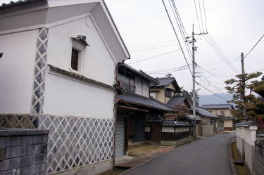 高梁川沿いは山陽道筋と高梁や新見をはじめとした備北地方とを結ぶ重要なルートであり、明治に入ると県道が整備され荷馬車や人力車が往来しますます繁栄を見たようだ。その後国鉄伯備線が建設されると拠点としての役割は終わり、美袋駅は普通列車のみが停車する小さな駅となっている。 高梁川の堤防上を通過する国道180号線から東に折れるとかつての松山往来の道筋が姿を現してくる。古い建物の多くは明治後期から大正にかけて建てられたと思われる造りで、店舗だったであろう建物も多く、また一部には土蔵を従えた敷地の広い邸宅もある。古い町並として連続した部分は少ないものの、歴史が刻まれた落着きを感じさせる。 |