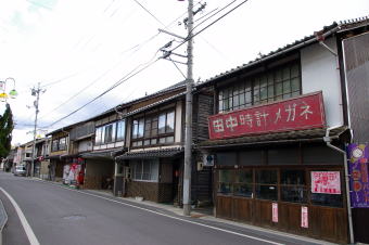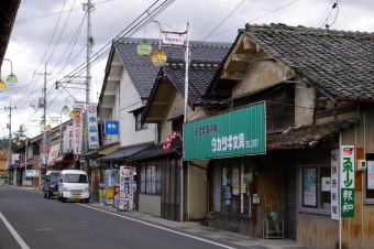 | 三次盆地の南部、馬洗川に沿い三良坂の町が開けている。国道はこの古い町を遠巻きにするような形で建設されたため町の形態はある程度昔のままで、随所に古い町並らしい風景を残している。 乗用車が悠々とすれ違えるほどの街路はもう相当の昔から変わっていないようだ。それは両側に展開する家々がそれぞれ同様に古びていることからもわかる。そしてその中の所々では、伝統的な町家建築が散見される。平入り主体だが妻入りのものも混じっているところが興味をそそる。 中世には備後国三谿(みたに)郡に属し、その頃から市場町として知られていたといわれる。その後江戸も後期に入ると馬洗川の水運を通じて三次との商業的なつながりが深くなり、文政9(1826)年には年貢米が三原蔵納めから三次蔵納めに変更になっている。同3年の記録では、町家147、酒造家4を有していて、賑やかな町場を形成していたことが察せられる。 この町筋は山陰・山陽を結ぶ街道上にも位置しており、北の三次と南の吉舎の両宿場との間宿としても位置づけられていて、町役人も置かれていた。 見たところ明治以前に遡るような建築の旧家は数棟のみのようだったが、大正から戦前にかけての建物は比較的程度よく残っていて、商店などとして利用されている例も多く見られた。 古い町並としての体裁には今ひとつの感はあるが、生活が息づいている自然体の町であった。 |