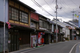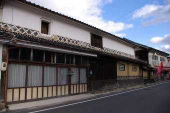 | 三良坂の町は一本道に沿い町並が展開し、このように一部には妻入り町家も見られました。 | |
