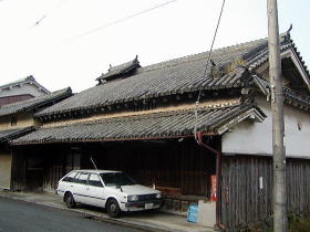 | 集落南部の町並。全ての旧家には生活が今でも営まれる生きた古い町並です。 | 苔むした本瓦を載せた旧家。中二階のような外観ですが実際は平屋かもしれません。建築年代的にはこの町で最も古そうでした。 |