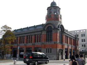 | 港地区より少し山側にある造り酒屋ですが町家風の正面像と煉瓦造りの側面像という奇妙な建築物です。これも門司港ならではでしょうか。 |