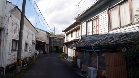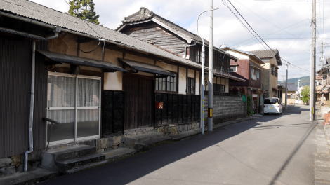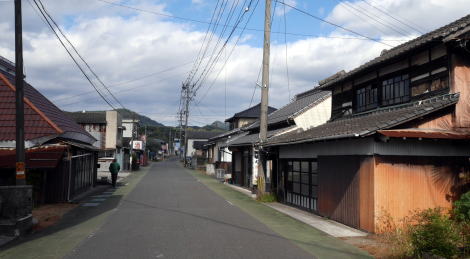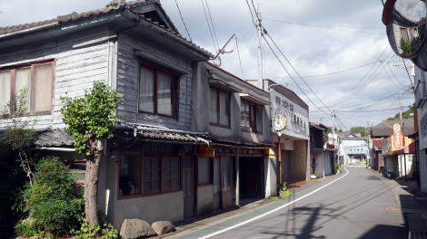 | 国東半島の基部、周囲を5〜600mほどの山地に囲まれた盆地部に山香町はある。山地から多くの小河川が注ぎ込み、古くから農業の盛んな土地であった。 藩政期には日出藩領で、3代目藩主俊長は原野であった土地に灌漑池を築造させ、生産性を高めた。しかしながら旱害、水害、虫害などに見舞われ凶作も多く、百姓一揆も頻発していたという。ただ盆地の中心で周囲の山間部からの産物の集散地として、小規模ながら商業町の発達を示していた。特に山香米と呼ばれる米がよく知られ、特に明治以降鉄道開通によって米の集散を背景に発展した。 また、この地は珪藻土が豊富に採掘され、大正期から昭和初期頃にかけて採掘・加工工場の開設が相次いだ。 日豊本線中山香駅付近に中心市街地が展開する。歩いて10分もすれば街はずれといった感じであり、格別に伝統的な建物が残っているわけでもない。しかし全国どこでもありがちな店舗というものがほぼなく、町並は昭和感に満ちている。 今は廃業されているようだったが造り酒屋の建物、線路の近くには大きな倉庫建築も見られるなど、米の集散地らしい風景もあった。 |