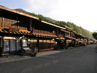 | 中山道は現塩尻市南部の本山宿を経て、山深い木曾路に分け入る。その中でも最も標高が高い難所であった鳥居峠を控え、この奈良井宿は存在した。峠下の宿であることからも大変な繁栄を示し、奈良井千軒と呼ばれるほどの賑わいようであったという。いわゆる木曾路と呼ばれた区間の中では家数・人口とも最も多い町場だったのである。 しかし一方奈良井には旅籠は他の宿場に比べて少なく、塗師の家や商いをする町家などが多くを占めていた。町の全てが宿駅として機能していたのではなく、半ば商工業の町として機能していたという。天保9(1838)年の『木曾巡行記』では、「宿内、出郷平沢は、往古より檜物、がらく細工、塗物等職業にいたし、先年はそれぞれ利得有之故土着の人数も相増凡三千人余も有之夫々渡世せし也」と記され、この一帯で盛んであった漆器業を基盤に町が拡大していたことが伺える。少し遡って享保9(1724)の史料では、宿内219戸のうち旅籠は33戸、商人7戸、その他の多くは塗物師や檜物師であった。 このような繁栄の町場が国道から外れたことで、今でもほぼ往時のままといえる古い町並が残り、またその規模も大きい。重要伝統的建造物群保存地区として旧家の保存、電柱の撤去等が行われてからは宿場時代の姿を逆に取戻したともいえよう。 町並は奈良井駅付近から南に約2kmに渡って連なり、下町・中町・上町と呼ばれる。下町は主として漆器職人が居を構えた地区らしく、小規模な町家が緩やかにカーブし、また緩い上り坂に従い密集している。出梁造りというこの地方特有の建て方のため2階部分が街路に覆い被さるような印象を受ける迫力の町並風景である。また、中町に入ると間口の広い裕福そうな家々が目立つようになり、牛馬の手配をしていた下問屋・上問屋の建物も残り、街路幅も下町に比べ広いことから町の中心を感じさせる。直角に二度街路が曲る鍵の手を経た上町も端正な町家群が連なる。鳥居峠を控えたこの辺り、水場もあちこちに設けられ険しい山道を越えてきた旅人は、喉を潤し一憩したことだろう。 保存度・規模ともに全国屈指の町並といえるこの奈良井宿であるが、現在の町の姿は観光地的ではない。団体客の姿は見られずせいぜい少人数の散策客が見られる程度である。大きく俗化することなく町並の質が保たれている点について、ここは全国一の成功例であろう。 |