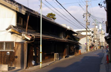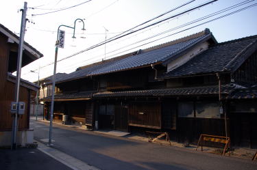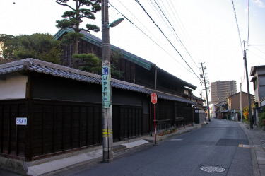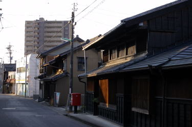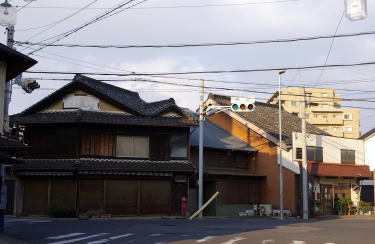 | 鳴海宿は本陣 1・脇本陣2軒・旅籠屋 68軒と東海道の宿駅としては中程度の規模であったが、東一里のところにある間宿の有松とともに絞り染めで大きく繁盛したところだ。尾張藩から奨励された産業であり安定的な町場の発展をしめしていたが、両者の間ではしばしば販売権を巡る紛争も発生していたという。 今では信じられないが鳴海宿付近はかつて直接海に面していた。地形的に北側が丘陵地となっているが南側は川を挟んで鳴海駅の付近は土地が低く、入海のようになっていたのだろう。江戸期頃には海岸線は後退していったというが、鳴海という地名その他海との関連を思わせる地名も散在しており、また古い寺社が街道北側に固まっていることからもそれが納得できる。 古い町並としてはやや連続性に乏しくなっているのが残念なところであるが、しかしそれでも平入りの伝統的な建物が随所に残っており、街道の片側に数軒連なっている箇所もある。厳かな塀に囲まれた重々しい邸宅もあり、宿駅業務のみならず産業が発達した様子を感じ取ることができる。 街道が直角に折れ曲る枡形もあり、旧宿場町らしい街路形態が残っていた。 |