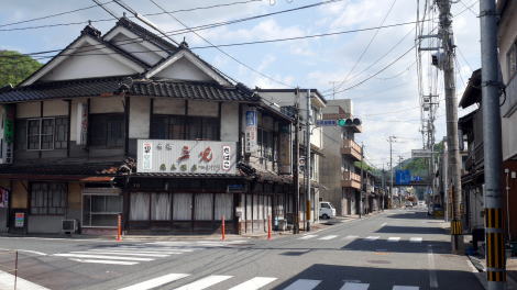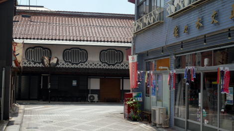 新見市は岡山県の北西部、備中地方北部の小盆地に開ける地方都市で、中国自動車道や伯備線が通り幹線交通網の要所となっている。近くには我国屈指の鍾乳洞・井倉洞や、銅の原料の採掘で一時代を築いた吹屋の町並があり、地味ながら観光客の訪れも多い地区である。 新見駅から南東に1km余り、高梁川沿いに細長く旧市街が残る。山陰地方との繋がりを思わせる赤瓦の古い民家が所々に残り、格子や白壁土蔵、海鼠壁なども自然な形で眼に入ってくる。畳屋や味噌(糀)商など、古くからの商売も絶やさずに営々と続けられている姿も目立つ。 北半分はかつてはアーケードに被われた商店街で、最近になってそれが撤去されたため以前とは異なる雰囲気となっている。建物の全体像が見えるようになったことで古い町並的風情が感じられ、一部に袖壁が残る町屋風の建築がそのままの姿で店舗を開いている様子なども見える。新しい商業施設に客を取られ人通りも少なく、閉じられている店も多くそのような姿を良いというのは罪深い話ではある。 |