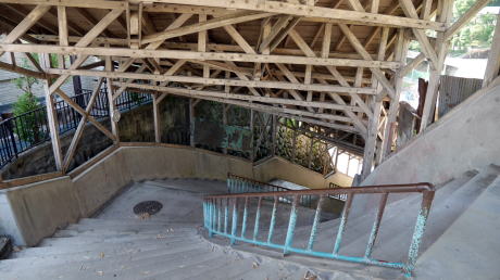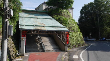 | 駅周辺と市街地とを結ぶ道は険しく屋根付きの階段が設置された箇所もある | |