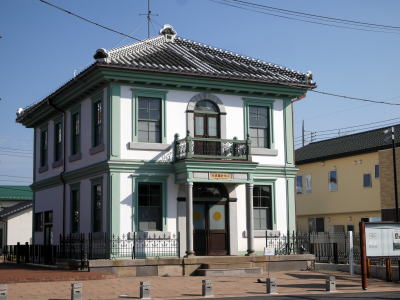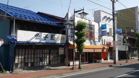 | 屋根付きの階段や坂道を登りつめると唐突に市街地が始まり、その対比に驚かされる。坂道直上の下之町・仲町・上之町付近、そこから街路が屈曲し材木町あたりが古くからの町の中心で、国道が踏襲している。材木町の交差点には土蔵を従えた厳かな商家建築が残り、下之町から上之町にかけては商店街となっているものの所々に構えの古いものが散見される。味のある古い看板を掲げた店舗もあり、興味深い町歩きができる。 一角には旧沼田貯蓄銀行の建物が洋風の佇まいを見せ、町並の印象にアクセントを添えていた。 |