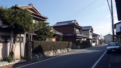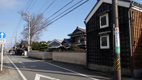 小俣町明野は町域の北部、近鉄山田線明野駅の南方に中心集落がある。 付近の街道は全て伊勢宮を目指していたと言ってよく、地区内には旧参宮街道が東西〜南北に貫いており、街道集落的な趣を示している。ここから南進し、宮川の渡しがあった場所まで断続的に街道集落が続いている。 街道沿いに象徴的な店舗が残る。「へんば餅」と記された暖簾の下がる伝統的な構えの店だ。これは伊勢参りの客に江戸時代から親しまれてきた銘菓である。へんばとは諸説あるが、馬に乗って伊勢参りをする客が馬を返して宮川の渡しに向ったことに由来するという。 この店舗あたりから北に向って家並が連なる。塀を巡らせ屋根を葺いた門を持つもの、土蔵を従えたものもあり、裕福な商家を思わせるものもあれば、妻入りの建物が連なり街道集落らしい景観も見られた。 明野駅の手前で左に折れ、その付近にも連続した家並が見られる。なお、更に西に向けても断続的に街道集落が現れ、参宮街道の賑わいが想像できるようであった。 |