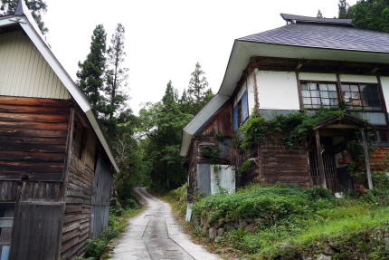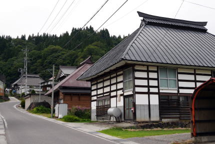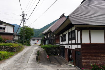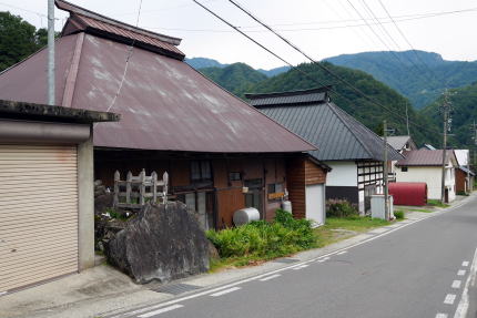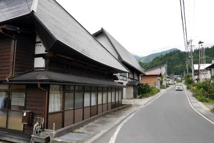 長野県北西部の通称大北地域と呼ばれる中で、大町市は信濃川水系の最上流域であるが、北部の小谷村・白馬村付近は糸魚川に注ぐ姫川の上流域にあたっており、新潟県の県境に向けて標高が下がる地形となっている。姫川の谷は峻険で、土砂崩れや雪崩が頻発するところでもあったが、松本周辺と日本海とを結ぶ重要な道でもあり、特に内陸部で貴重な塩の運搬路となったことで荷の往来が多かった。 文明15(1483)年の穂高社造営諸役注文には「穂高ノ領四至堺ノ事、東ハ千国大道ヲサカフ」とあり、この頃から既に街道として往来があったことがわかる。 山国信州のこと、塩は外部からの輸入に頼らざるを得なかったわけだが、特にこの糸魚川との道が塩の道と呼ばれたのは、松本藩が塩に関してはこの街道からの移入に限定させ、中山道や甲州街道などを経由する塩、いわゆる南塩を禁じたからである。塩のほか海産物なども荷として多く扱われ、生活を支えるまさに大動脈だったわけである。 輸送には牛が多く使われたが、この千国は宿場として栄え、特に牛方宿と呼ばれた。また越後との国境に近く、藩の口留番所が置かれ、通行人や荷の改めが行われた。また物資に対しては運上金もここで取立てがおこなわれた。 千国の集落は姫川の左岸、やや高いところに展開している。途中でL字型に折れ曲っており、特に南側の坂道に沿って伝統的な家屋が見られる。それらはトタン葺の屋根を持ち、梁組を壁の表面に見せる真壁が印象的だ。屋根はもともと茅葺であったと思われる。 この付近から北は特に冬期の積雪が甚だしく、牛を使ったとはいえ重い塩俵を運んでの行軍は困難を極めたに違いない。この宿は牛方にとっても牛にとってもひと時の安息が得られる貴重なところだったのだろう。 |