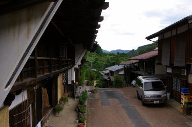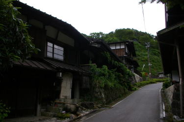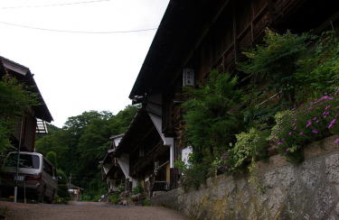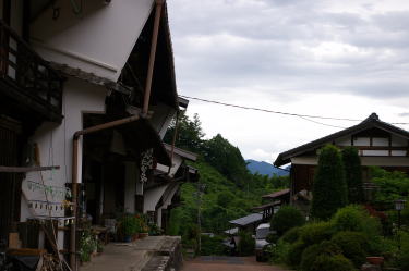 ここで紹介する大妻籠集落は旧中山道に沿い、宿場町であった妻籠より南に1kmほど離れた位置にある。大が付されるのでこちらが本家本元のように思われるが正式に宿駅として認められていたわけではなく、また町の規模も妻籠に比べるとはるかに小さい。馬籠宿との間には峠があり、それに向けていよいよ急坂が展開しようとしている。深山の嵐気が感じられるところである。 妻籠宿の属村のようなところであるが、妻籠との間で木曽川の支流を渡る。ここは橋場と呼ばれ、中山道から飯田方面に向う清内路街道が分岐する追分となっている。そのことで橋向うの大妻籠地区に旅籠街としての需要があったのではないかと考えられている。 坂道に展開する町家は妻籠よりもむしろその構えが大きく、間口も広い。そして中心部にはうだつを堂々と立上げた旧家が幾棟か連続している。宿場町であった妻籠は間口の広さに応じて課税される制度があったはずで、一方ここではそのような縛りがなかったからかもしれない。それにしても迫力を感じさせる佇まいだ。民宿として現在でも営業されているものもある。 風景的にも周囲の山々だけでなく町並の中にも緑が多く、また家々もずいぶん土地的に余裕のあるような建て方で、中山道沿いの町並としては特異なところである。 |