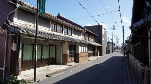 | 城下町上野の市街地から北東に5kmほど、柘植川左岸に佐那具の町並が開ける。地形的には上野盆地の縁端に位置する。 大和と伊勢を結ぶ街道沿いに宿駅が設けられ、町場が発達した。江戸初期の寛永期、藩主の休憩所として佐那具公亭が建てられ、その頃に町も整備されてたといわれる。下町・中町・上町と呼ばれる町並が続いていた。寛延年間頃の記録では650名弱の人口を有していた。 『三国地志』には、「佐那具駅、按 古市片町ト云、河水ノ患アルヲ以ッテ今ノ地二移ス」とあり、柘植川の氾濫により水害対策として川から少し離れた今の街道沿いに移設したか。 国道25号と柘植川とに挟まれた旧街道を歩くと現在でもひと目で街道集落とわかる家並が展開している。切妻平入で奥行深い家々は、間口によって税額が決められていた時代そのままである。商店だった家が多いようで一階部分が開放的な造りとなっている家々が目立つが、端正な出格子が綺麗に残されている旧家もあった。一部には茅葺屋根だったと思われるトタンで被覆された屋根の家も見られた。 伊勢神宮への参詣路としても大いににぎわったのだろうが、明治30年に現在の関西本線である関西鉄道が開通、対岸に佐那具駅が設置されて以後は街道としての役割は漸減し、国道の開通で決定的なものになったのだろう。町の中心付近から柘植川を渡る橋があり、古い立派な親柱が残されていた。駅が出来た頃は新町と称される新たな町並ができたという。 |