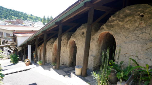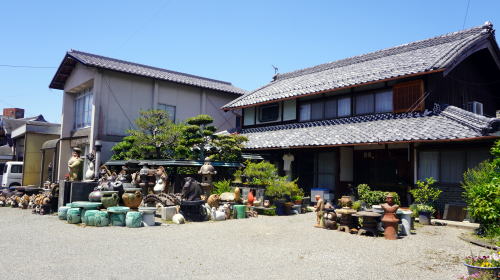 県の南端、標高300mほどの高原盆地に開ける信楽の町。古代には平城京の遷都先として紫香楽宮が造成されるなど深い歴史が刻まれた土地で、平安期には信楽荘が置かれている。 古くから農業が基幹産業であったが、特筆されるのが信楽焼で知られる窯業で、遅くとも鎌倉中期には本格化していたといわれる。農耕用の水がめや壺など生活のための品々が製作され、商品化されていた。16世紀前半の室町期頃になると、茶湯の普及により古信楽と呼ばれる茶器の数々が生産され、信楽の焼物は広く知られるようになった。 江戸期に入り商業活動が盛んになると、信楽焼は大坂、京都、堺を中心に各地に販売され、寛政7(1795)年には大坂表出張会所を設置し問屋4軒を定め、販売を強化した。生産活動も地区により製品の種類が分けられ、大規模な登り窯も多数造られ増強された。 信楽茶と呼ばれた茶の生産とならび一大産業町として隆盛を誇った。茶は明治以降急速に規模が拡大し、同11年には400戸近くが茶栽培や加工業に従事し、東京・横浜をはじめ同じく茶処である宇治にも出荷された。 旧国鉄信楽線に由来する信楽高原鉄道信楽駅は盆地中央を流れる大戸川の右岸にあり、それに対して市街地は支流の信楽川左岸に展開している。町内の街路形態はかなり入組んでおり、無秩序といってよいほどで歩いていると同じところに戻ってきたり、また袋小路になっていたりと迷いがちとなる。そのような所にも焼物の小さな店舗があり、狸の置物をはじめ壺などの商品が並べられている。看板などない普通の民家と思われる建物でも、庭先に無造作に並べられている風景もあった。 古い町並は、それら路地の随所に見られ土蔵などの見られる裏路地的風景が点在している印象だが、信楽川に近い地区には商家的な連なりが見られる箇所もあった。銀行や商店もあり、国道沿いに移る前は町の中心であったのだろう。町並風景よりやはり焼物の町としての印象が強く、観光用に公開された窯元もあり、少し入ってみると立派な登り窯が連なり一部は食事処として利用されていた。 |