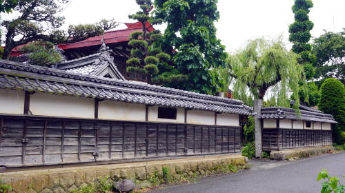 塩尻市平出地区は市街中心から2km余り南西に位置し、周囲は田園地帯となっている。 地区内を古くは中山道が横断し、江戸方に塩尻宿、京方に洗馬宿を控えそのほぼ中間地点である。元禄7(1694)年には洗馬・本山両宿の助郷にも指定された記録がある。 ここに集落が発達したのは豊富な水があったからだろう。平出の泉と呼ばれる小池からは豊かな水が湧き出し、水田を潤し生活用水として利用されてきた。池から坂を下って集落に入ると、街路に速い水の流れがあり清涼感を覚える。水神様を祀った石碑などがあり、水源と水を大切に扱われていることがわかる。この付近から妻入りで緩い傾斜の屋根、その頂部に雀踊りと呼ばれる独特の棟飾りが特徴の本棟造りの旧家が目立ってくる。本棟造りは外見的に非常に豪勢な印象を抱かせるものだが、事実幕末までは有力な豪農や商家にのみ藩庁から建築が許可されていた。明治に入りその見映えに倣って似た建物を建てる農家も多く出てきたというが、しかしそれなりの財力がないと不可能なことだっただろう。 地区には10軒ほどの本棟造りの建物があり、集落の規模からすると密度が高いと言える。瓦を葺いた板塀を巡らせた邸宅、大きな土蔵を従えた家などがあり、水利に恵まれ裕福な農家が多かったためと考えられる。 集落北側には平出遺跡公園と名づけられた公園がある。これは地区内で発掘された縄文時代の住居などが復元展示されたもので、現在残る町並と直接の関係はない。しかし、古代遺跡に注目されたその影響もあるのか、集落内の本棟造りの建物などの保存の動きもあるという。 小さな集落ながら見応え感のある家並があり、水の風景もそれに潤いを与えているように感じる。私は時間の都合もあり遺跡公園は訪ねていないが、公園そして周囲の田園風景も含め訪ねる価値のあるところである。 |