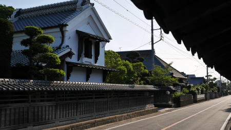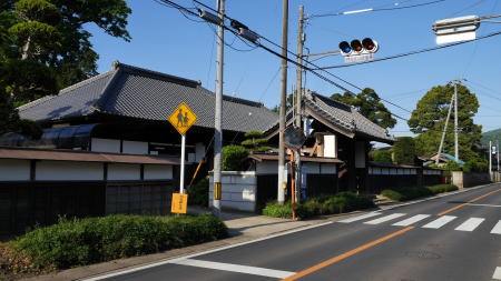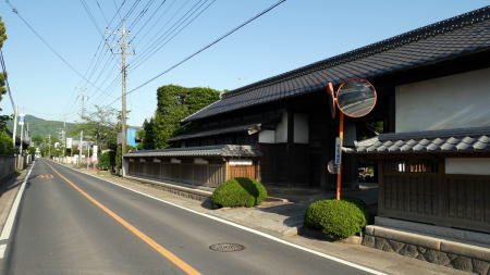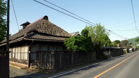 ここで紹介する志筑地区は平面座標的には霞ヶ浦と筑波山との中間点付近にあり、周囲には田園地帯が広がっている。 今では石岡方面から筑波方面への通過点でしかないこの地区は、関ヶ原の役の後に常陸国主であった佐竹氏が秋田に転じたのと入れ替わりに本堂氏が志筑に入った。志筑藩は1万石に満たぬ小藩ながら明治維新まで継続した。 水戸街道の稲吉宿の助郷(宿駅業務を補佐する周囲の村)としても指定されていたという。 県道138号線を石岡市方面から西進すると、直線的な街路の両端に塀に囲われた邸宅が散見される風景が展開してくる。或るものは厳かな長屋門を通りに面させ、また他のものは茅葺の屋根を現在に残していた。いずれも広い敷地を持ち豪壮という印象そのものの屋敷群である。 この町並は探訪中に偶然通りがかって急遽取材したものであり、資料が今ひとつ乏しいのだが、志筑陣屋を中心とした地域の政治中心としての歴史が、今にも威厳を感じさせる家々の佇まいとして継承されているのだろうか。屋敷群の生垣や中庭には樹木が多く植えられ、緑濃く清々しさも感じる町並風景であった。 |