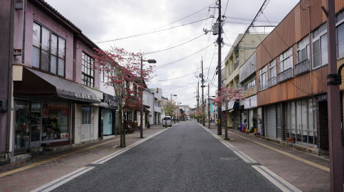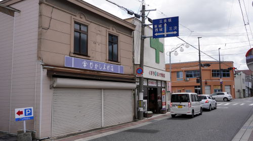 庄原市の市街中心は西城川南岸の一段高い台地上に開けている。この本町一帯に市役所をはじめ行政・文化施設が立地し町の中枢地区となっている。近世初頭にここが交通の要衝として町場が発達したことが始まりだが、台地上で水が得にくいことからもともとわずかな耕地があるだけの所だった。それでも九日市と呼ばれる定期市が開かれるようになり、西側の三日市町同様市場町・商業町として発達した。三日市町とは1km余りしか離れていないこともあり、商圏などの紛争が起こることもあったという。 本町地区では、商店の連なるバス通りの1本北側の小路、備後庄原駅に向けて台地を下る坂道などに古い町並が見られるが、メインの通りも商家が連なっていたものと思われる。現在は郊外型の新興商業施設などの影響か、閉店しているものが多い。大柄な建屋にデパートと記した地場スーパーは、1階部が駐車場として使われているのみであった。看板建築風の外観を持つものもあり、それらが昭和的な町並を演出していた。 |
