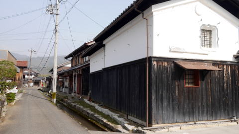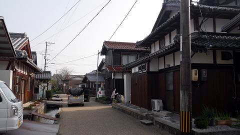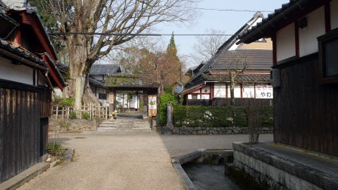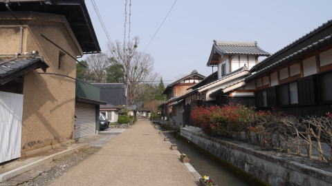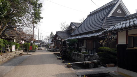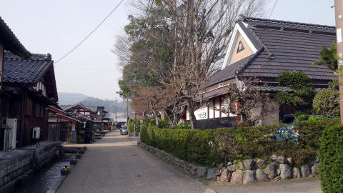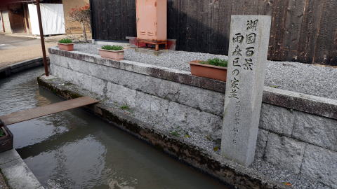 | 水路の巡る中に家々が連なる雨森の町並 | |