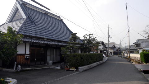 | 高月町雨森は湖北の田園の中に寺社を取り囲むように立地している集落で、いかにも昔ながらの農村集落というのが地図を見て想像できる。 集落中央に鎮座する天川命神社は『延喜式』神名帳の伊香郡「天川命神社」に比定する説があり、郡の総社として隆盛をきわめたといわれる。また集落の傍らには北国脇往還が通過し、街道の往来が盛んな頃には店舗が並んでいたという。 そのような側面を持つこの雨森集落の東には、県最北端栃ノ木峠に源を発する高時川が流れる。集落内にはそこから引かれた水路が縦横に巡っているのがまず第一の特徴として挙げられる。農業用水として整備されたものというが、それが現在では水のある豊かな集落風景を演出するものとして、「湖国百景」のひとつに選定されている。 また、江戸時代に活躍した蘭学者・雨森芳洲の生誕地でもあり、芳洲庵と名づけられた施設もある。集落風景としてはその付近が最も濃密で、水路には水車、土蔵やもと茅葺だっただろう外観の家屋が並ぶ。水路に沿っては花々も植えられており、ややもするといかにもという風景になりがちだが、それはこの集落の景観を守る取組が始まってから既に30年超となり、自然な趣が醸し出されているからだろう。取って付けたような感が全くない。 集落内には手作りの案内地図などもあり訪問者を意識した様子は見られるが、観光地といった風情が皆無なのが好感が持てた。 |