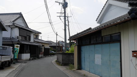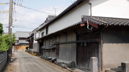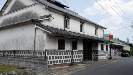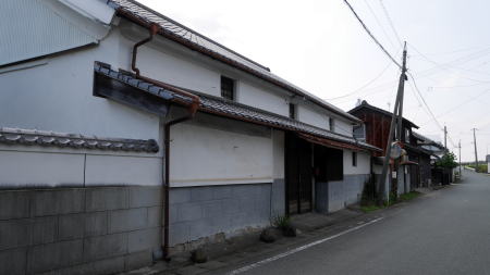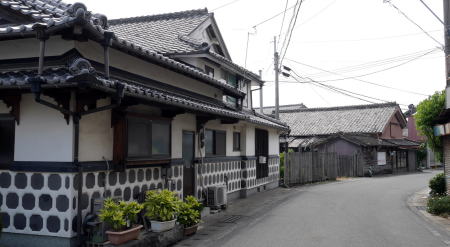 玉名市大浜地区は菊池川の河口部、現在こそ埋立等でやや内陸部にあるがかつては有明海に面するところであった。 古くは浜村と呼ばれ、早くから町場が形成されていたという。菊池川流域は熊本藩領内では重要な穀倉地帯であり、大坂廻米の中でも珍重されていた四蔵米の一つに数えられた肥後米の輸送路ともなっていた。上流部で生産された米は隈府(現在の菊池市)や山鹿で川運に委ねられ、この大浜から3kmほど上流の高瀬港に集積され大型船に積替えられた。高瀬には藩蔵もありにぎわったと言うが、江戸中期以降、土砂の堆積などにより港の機能が低下する事も多く、その場合は河口に位置する大浜が代替港として使われた。肥後米40万俵のうち高瀬港・大浜港からは25万俵が積出されたといわれるほど港としての賑わいがあり、時期によっては高瀬港を凌駕する賑わいを示していた事もあったのだろう。 現在はやや内陸に位置しているうえに菊池川沿いに嵩上げされた堤防下にあって、港町らしい雰囲気は淡いものになっている。居蔵造りと呼ばれる土蔵に似た外観の伝統的な建物が散見されるのは、かつて廻船業で財力を高めた家々の名残だろう。廻米のほか菜種油、綿製品などを取扱う商人もあり、問屋街として賑わった。 歴史を解説した案内板もあり、古い町並としての連続性は決して高くないものの、質的には高いものが残されていると言えよう。 |