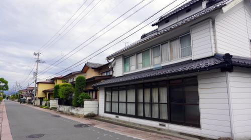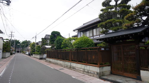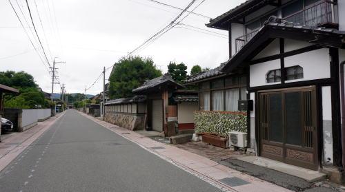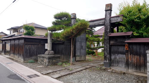 善光寺からは各方面への街道が縦横に巡り、各道は要に向けて賑わいを増していった。北国脇往還と呼ばれた街道は同時に善光寺街道とも呼ばれ、この呼ばれ方をされた街道も一つではない。 北国脇往還において善光寺門前に最も近い宿駅が丹波島宿であった。犀川を挟んで対峙しているといってよい位置だが、犀川の渡しは度々川止めとなり街道上の難所でもあった。そのため宿役は重く、通行が多い折には百姓を徴用し、多くの助郷に頼らざるを得なかった。 宿場町は東西の一直線の街路六町(600m強)に展開、旅籠等が立地し、本陣や問屋も置かれていた。西は於佐加神社、東は犀川の渡しに向う桝形でそれぞれ限られていた。 街路の両側に二階の立ち上がりが高い商家風の建物が散見される。それらの姿から、現在残る建物は宿駅時代のものではなく以後に建て替えられたものと考えられる。しかし、周囲に郊外の住宅地が展開している中で、旧宿場町の街区に入ると他とは明確に空気が異なるのを感じる。 もともと建て方に余裕があるからか、建て替えに当り街路から建物を控え、前庭に植栽するなどして緑濃い家並の雰囲気となっており、宿場町というより裕福な商家の邸宅地とでもいった風情だが、瓦を葺いた立派な門構えが残されていたり、屋号が表札に並んで掲げられていたり、また一角には高札場が復元されていたりして、宿駅らしさが演出されていた。 |