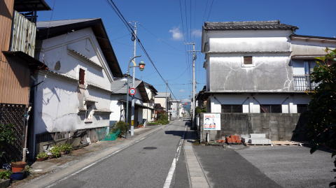 かつて韮生郷と呼ばれていたこの地域は流域の広範囲を占め、韮生五十余村と呼ばれるほどであった。文政2(1819)年の記録によると、郷内全体で戸数1960、大庄屋などの支配的立場にあるものが90軒近くを占めていた。また百姓1334軒とともに商人21軒、諸職人91軒とあり、若干の商工業もあった様子がうかがえる。 背後の山村からの物資供給に加え、茶や製紙など産業も盛んで在郷商業町的発達を示していた。茶は韮生茶と呼ばれ上茶として知られていたという。ここから高知及び港町赤岡方面への街路も通じ、流域随一の町場の発展を見た。 流域を貫く国道195号は徳島との県境を越え阿南市へ達するが、いわゆる幹線国道ではなく印象としては山あいの小さな町といったところである。 古い町並としては主に美良布地区に見られ、平入り切妻の伝統的な建物が散見されるほか、一部には立派な門構えの邸宅も見られた。国道の一本北側にあるこの街路はかつてのメイン道路で、家々の佇まいからは多くの商店が並んでいただろう様子がわかる。 この通りを東に向い、韮生野地区に入った所には大川上美良布神社が思いの外立派な構えを見せていた。韮生郷の総鎮守で、参拝はしなかったが拝殿には素晴しい彫刻が施されているとの情報である。 |